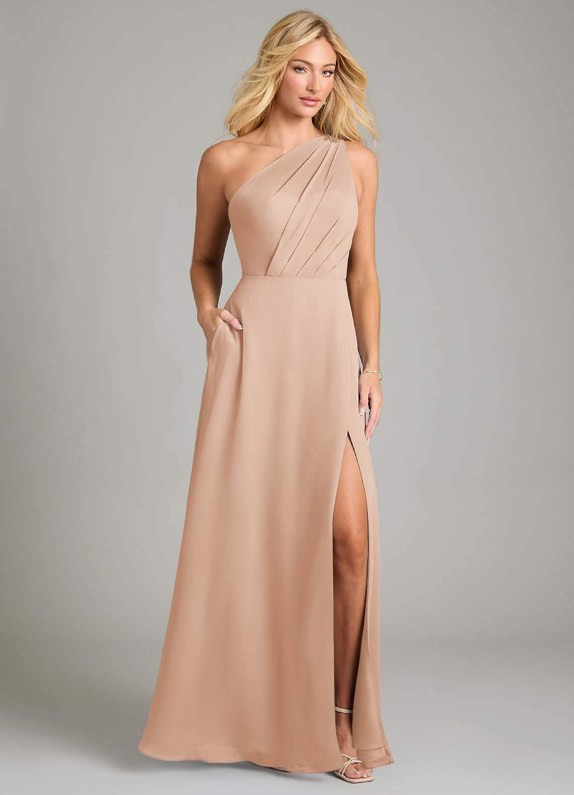 English Rose A-Line One Shoulder Chiffon Dress
