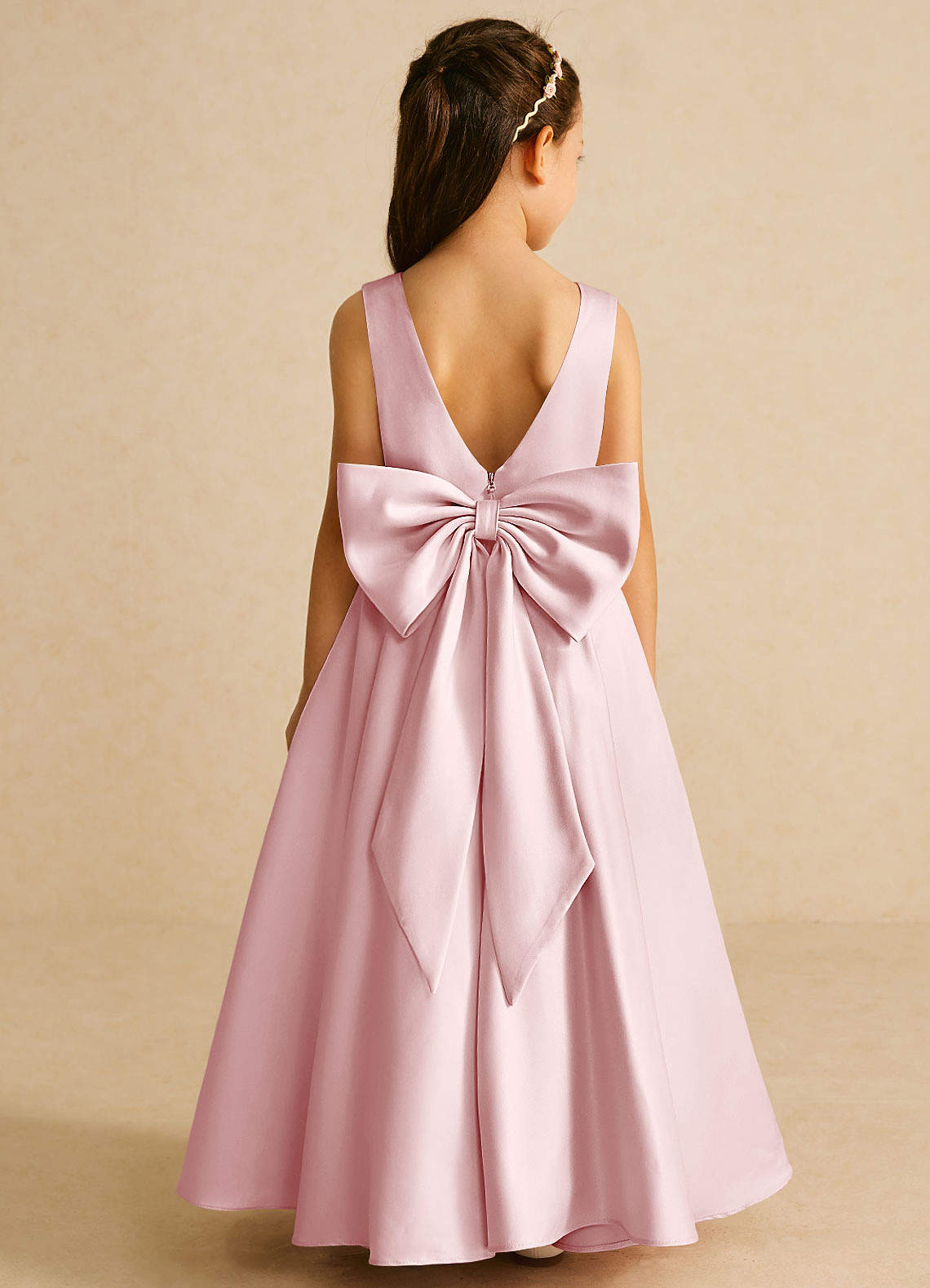 Powder Pink A-Line Bow Matte Satin Dress