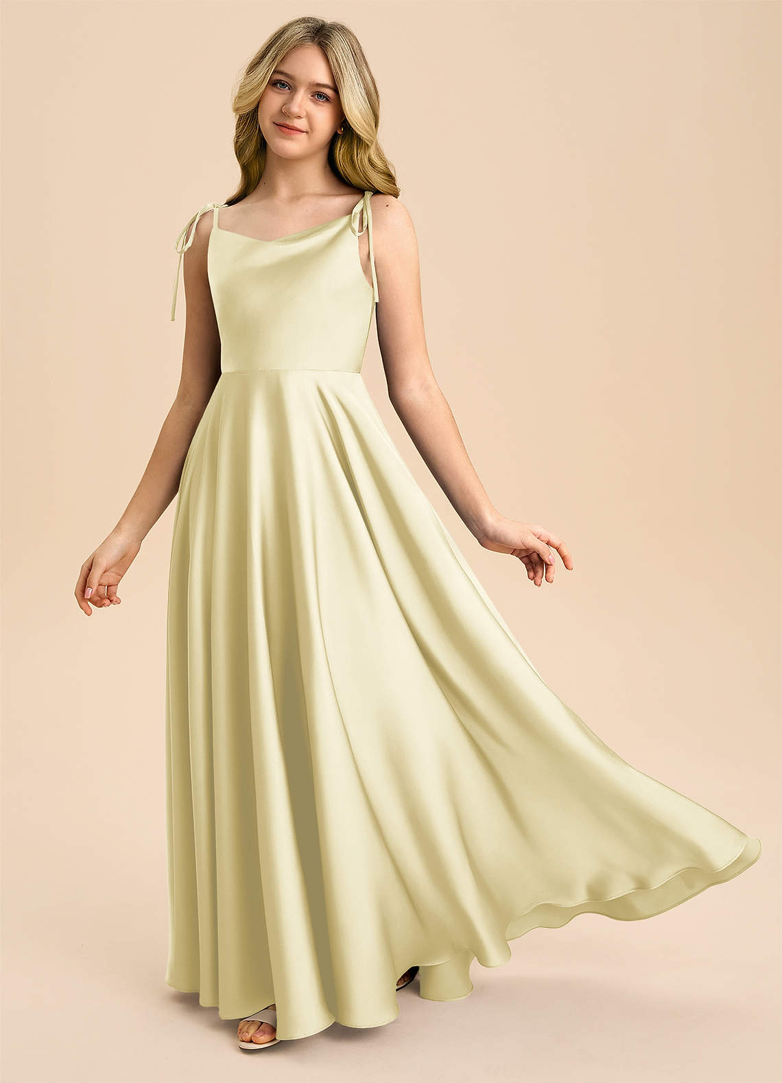 Lemon Sorbet A-Line Bow Stretch Satin Dress