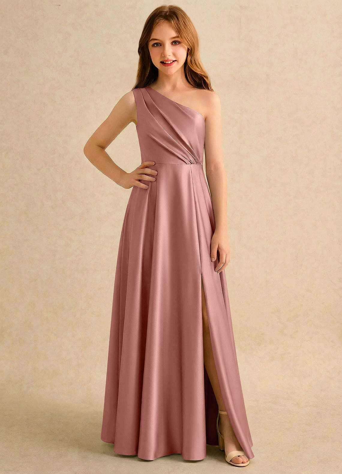 Rosette A-Line One Shoulder Stretch Satin Dress