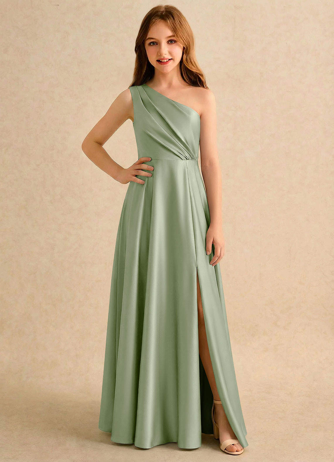 Dusty Sage A-Line One Shoulder Stretch Satin Dress