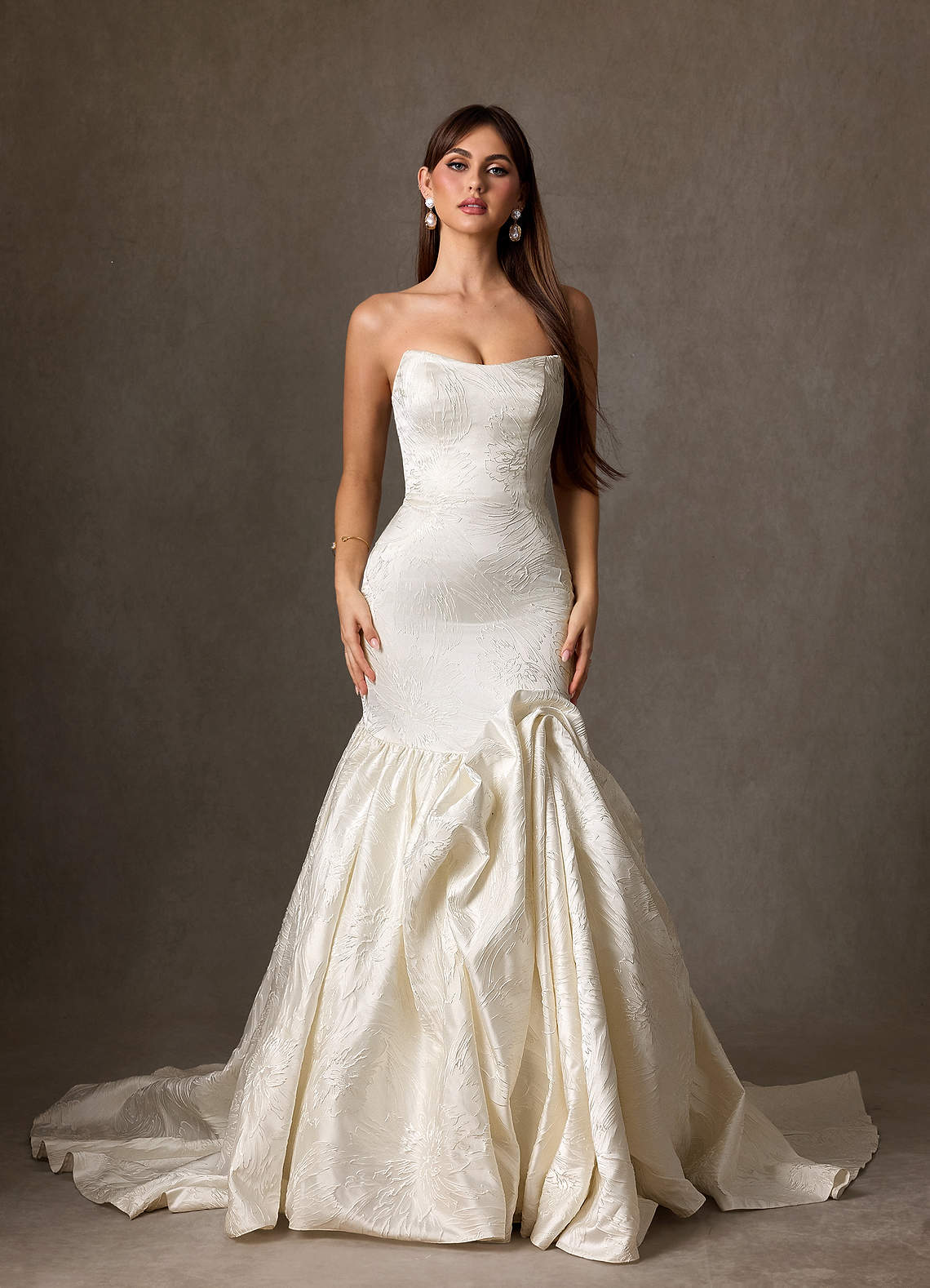 Azazie Quinta Wedding Dresses Antique White Mermaid Strapless Floral Jacquard Dress image1