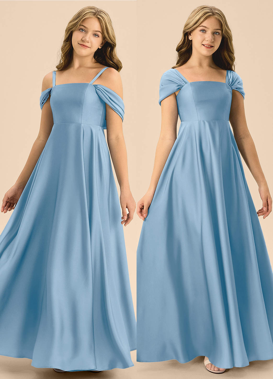 Powder Blue A-Line Bow Stretch Satin Dress