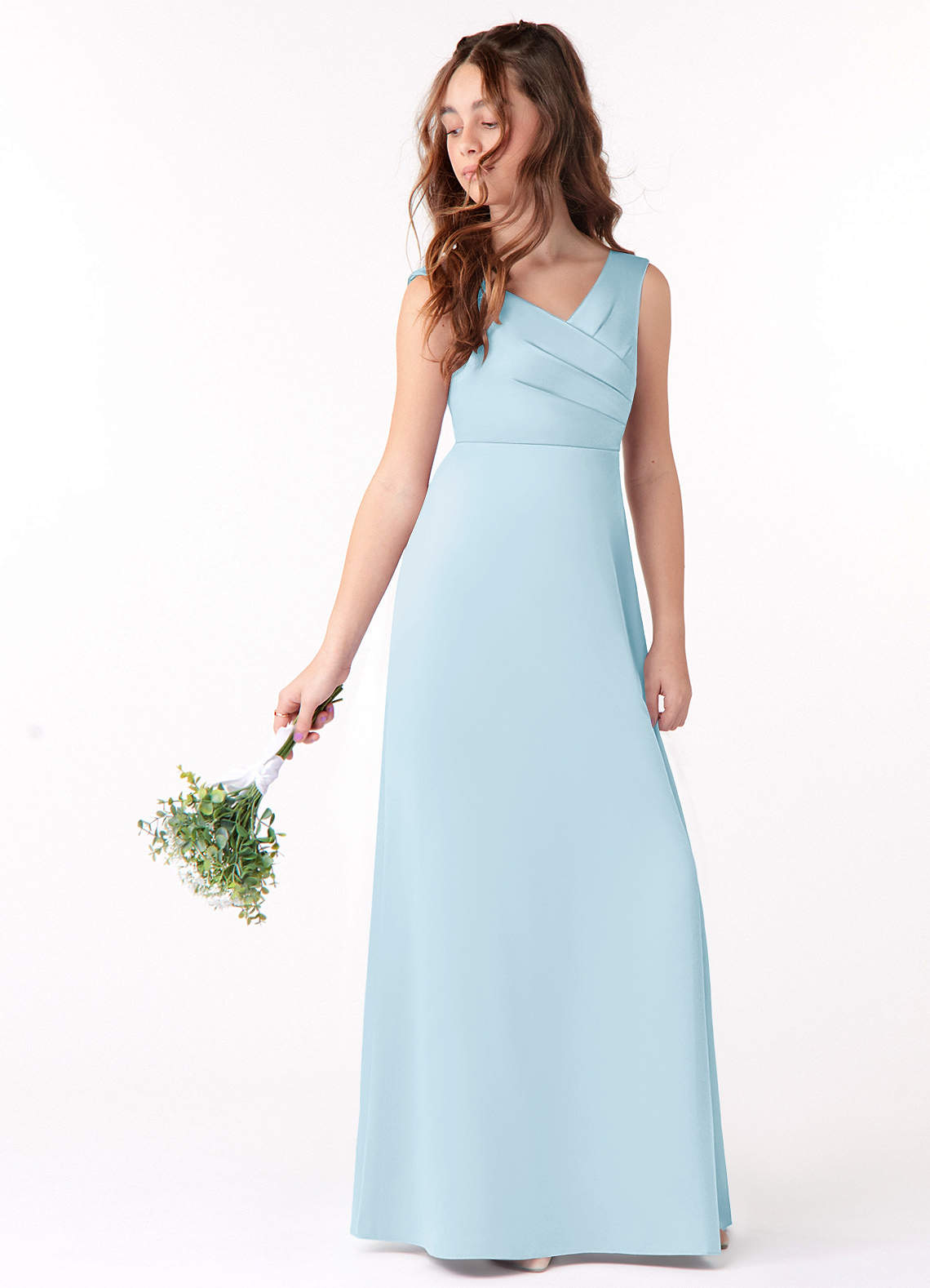Sky Blue A-Line Pleated Stretch Satin Dress