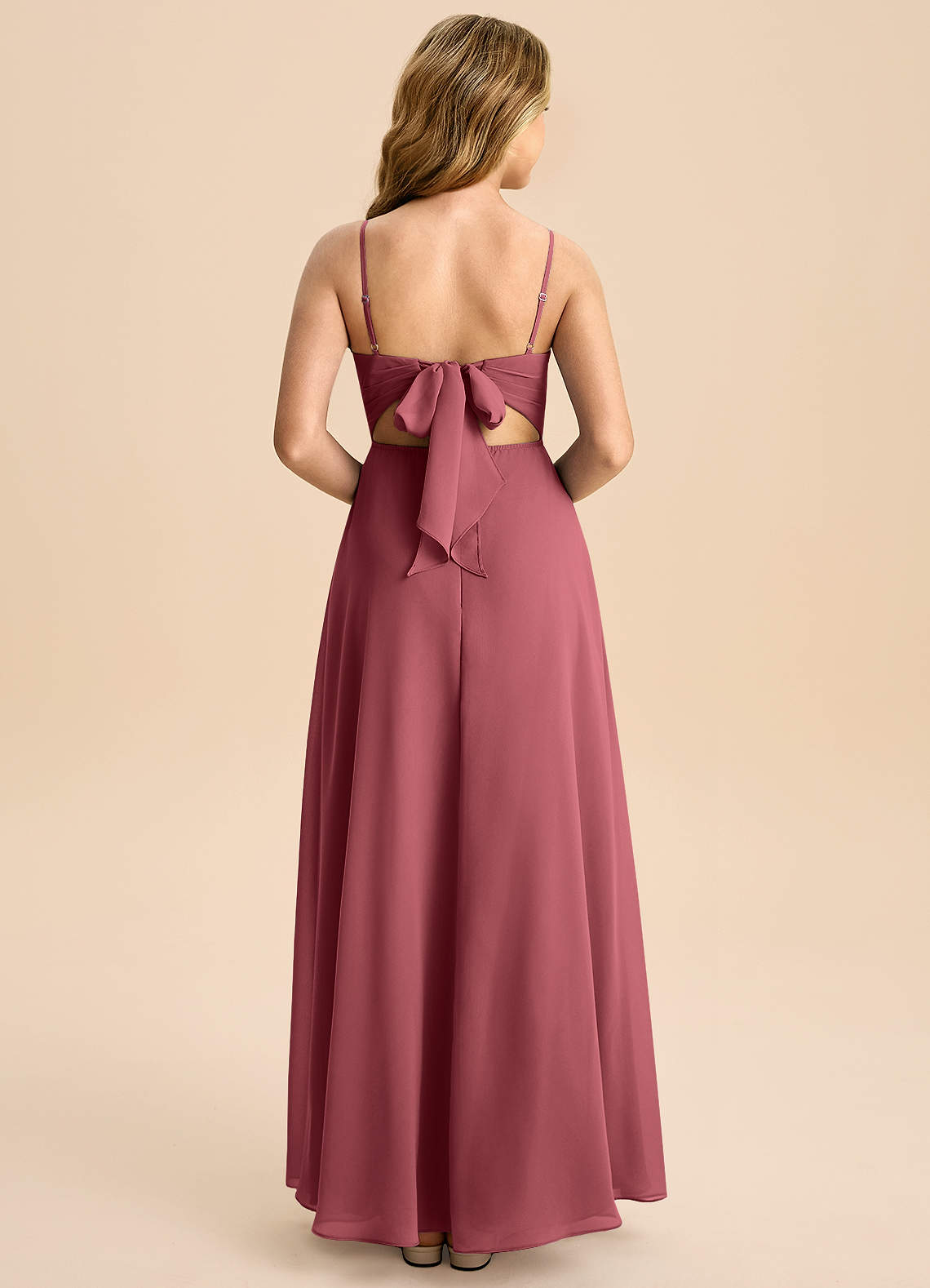 Merlot A-Line Bow Chiffon Dress