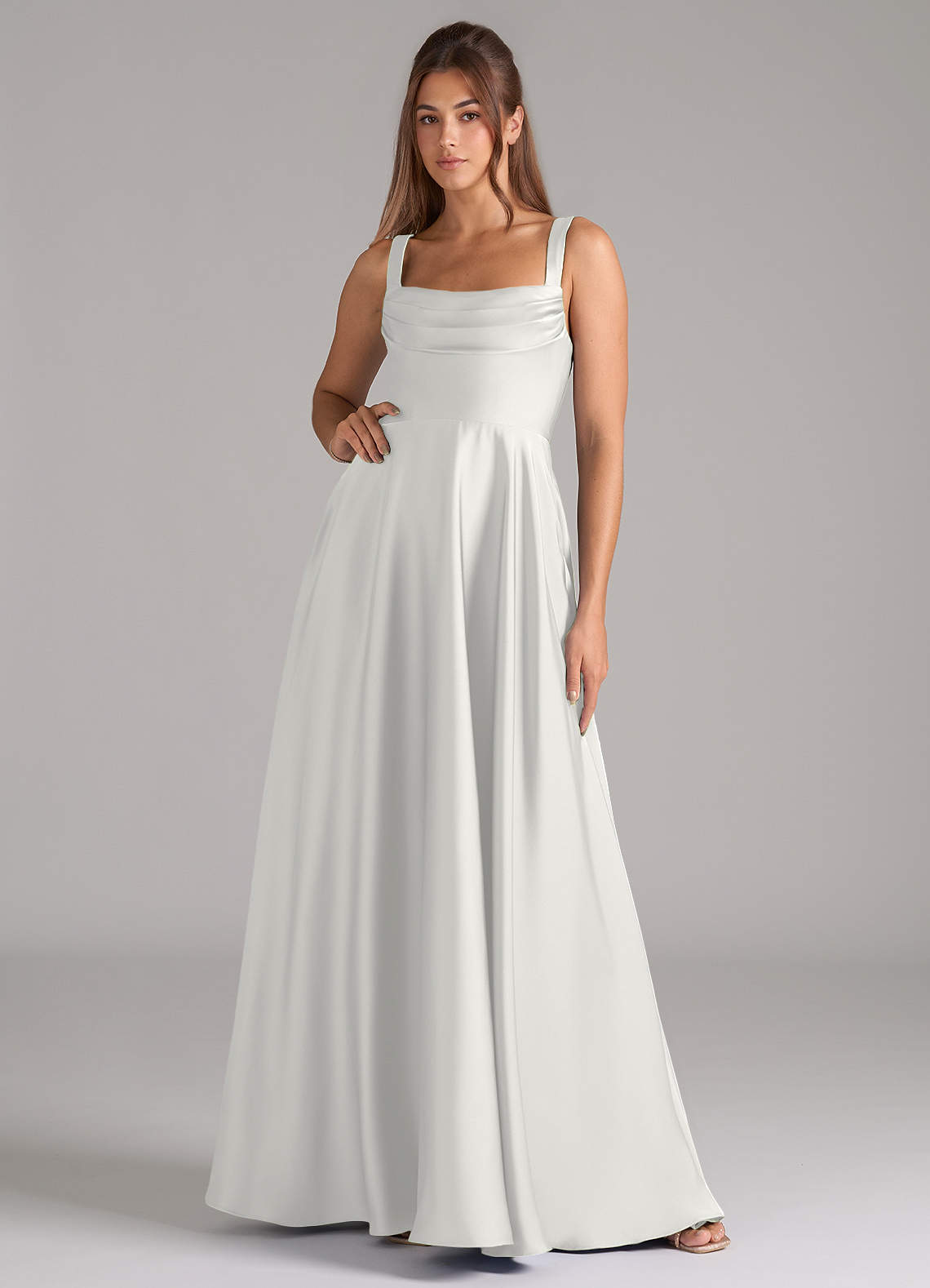 White A-Line Pleated Stretch Satin Dress