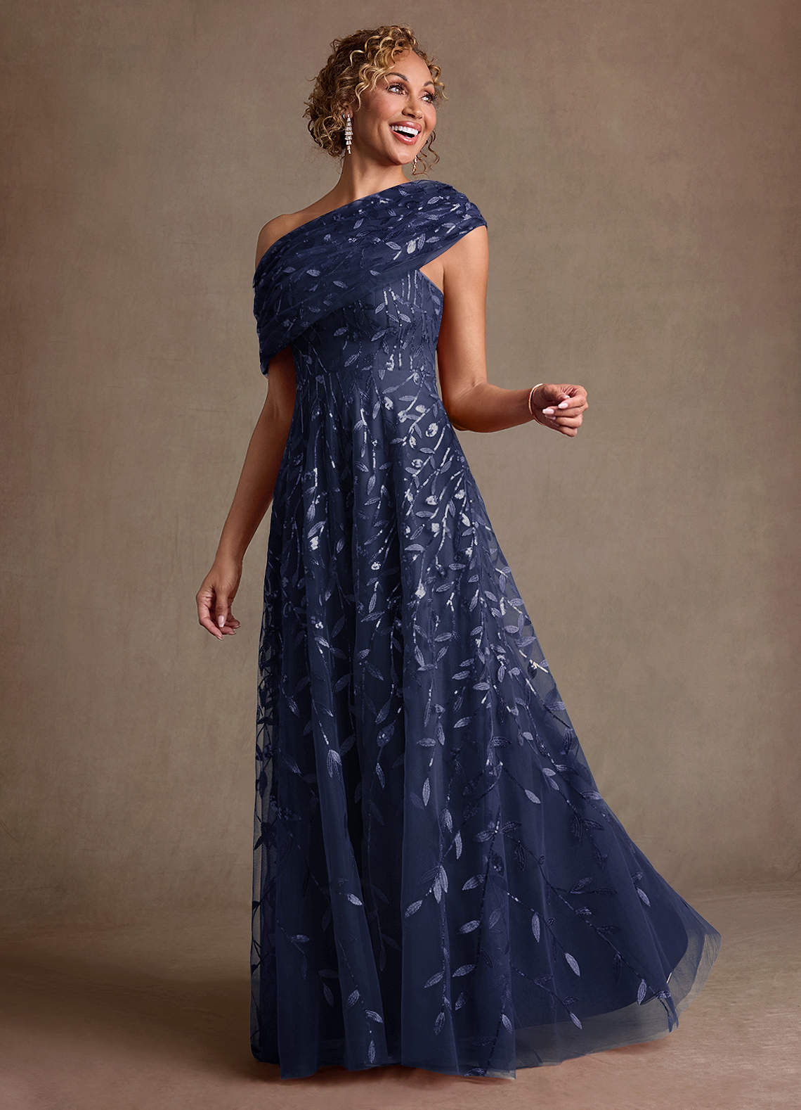 Dark Navy A-Line Off the Shoulder Lace Dress