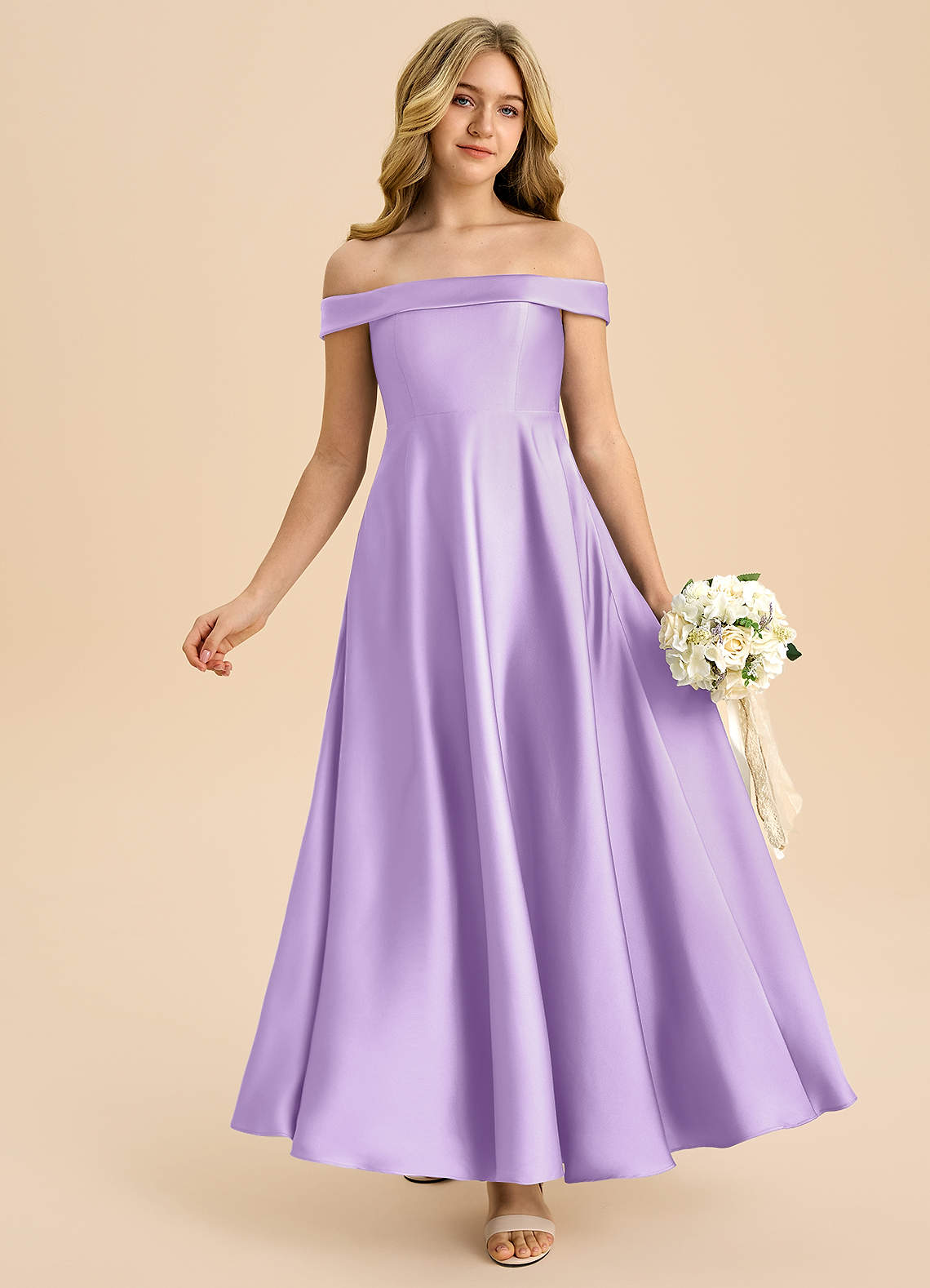 Lilac A-Line Off the Shoulder Stretch Satin Dress