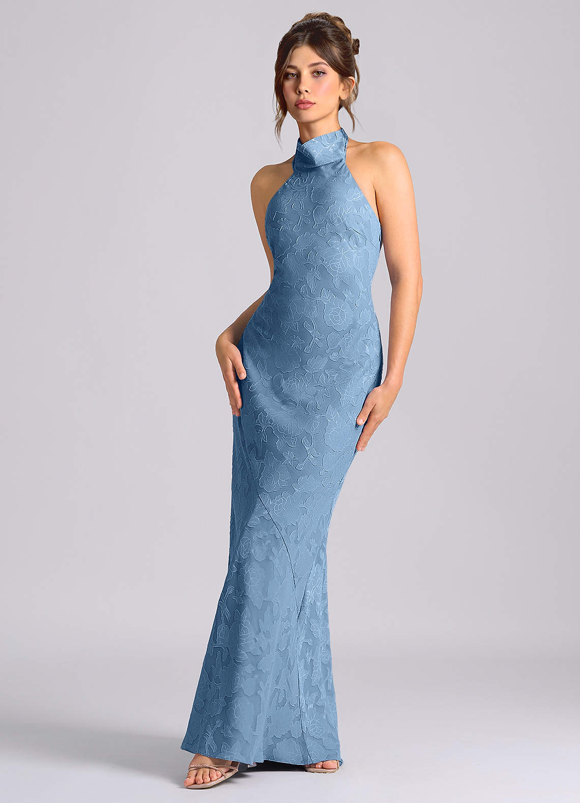 Steel Blue Mermaid High Neck Floral Burnout Dress