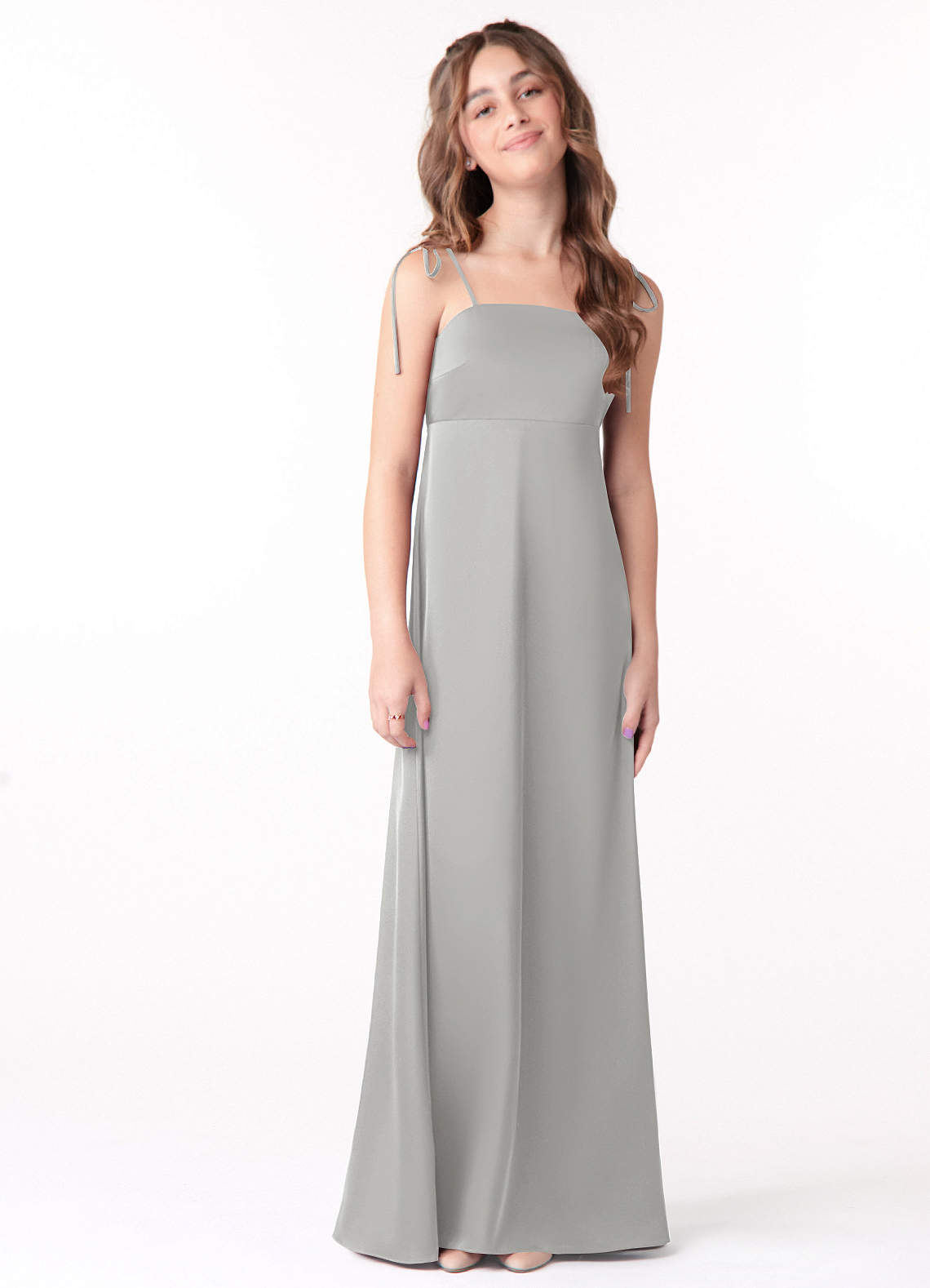Silver A-Line Bow Stretch Satin Dress