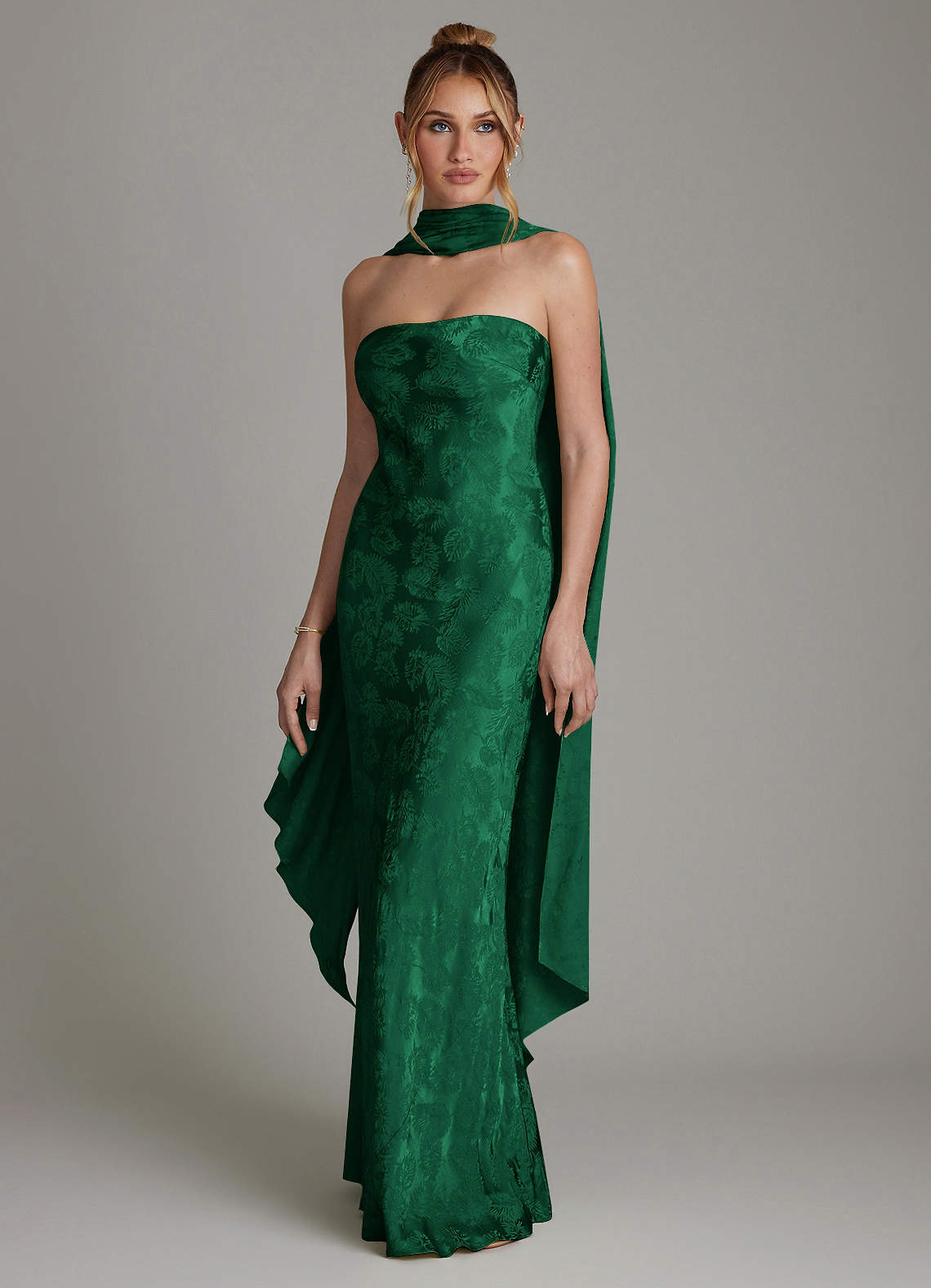 Evergreen Jacquard Sheath Strapless Jacquard Dress
