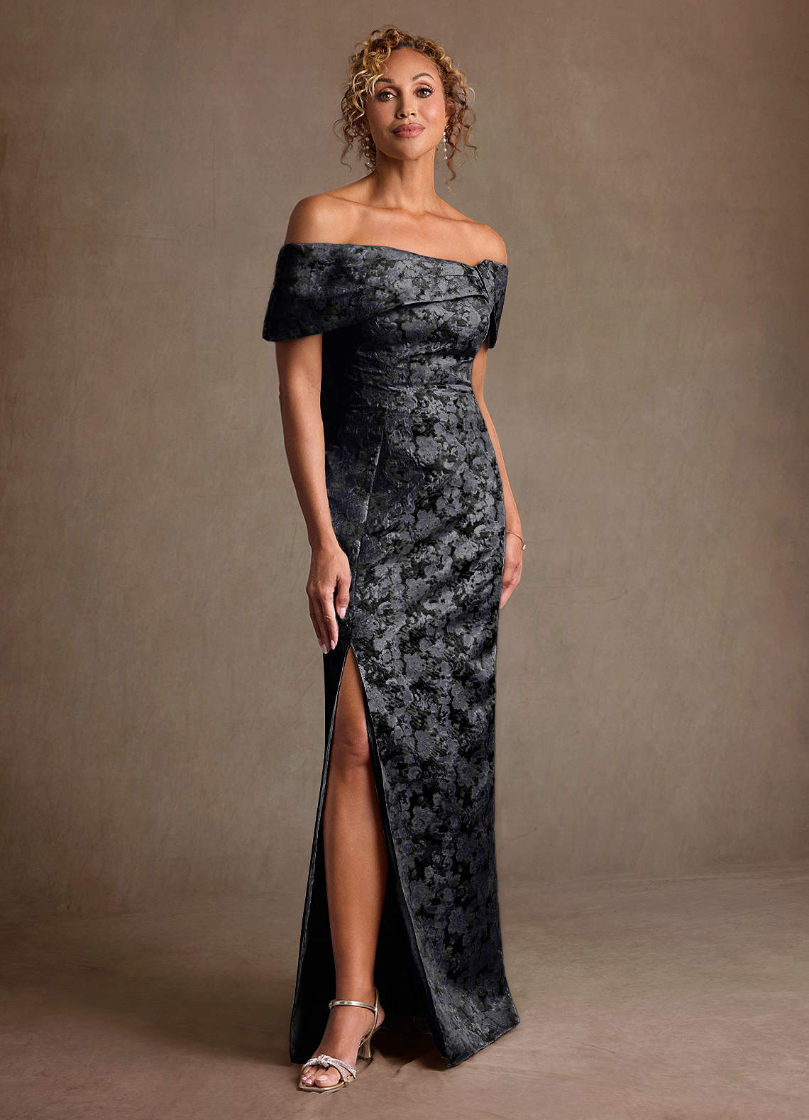 Black Sheath Off the Shoulder Floral Jacquard Dress