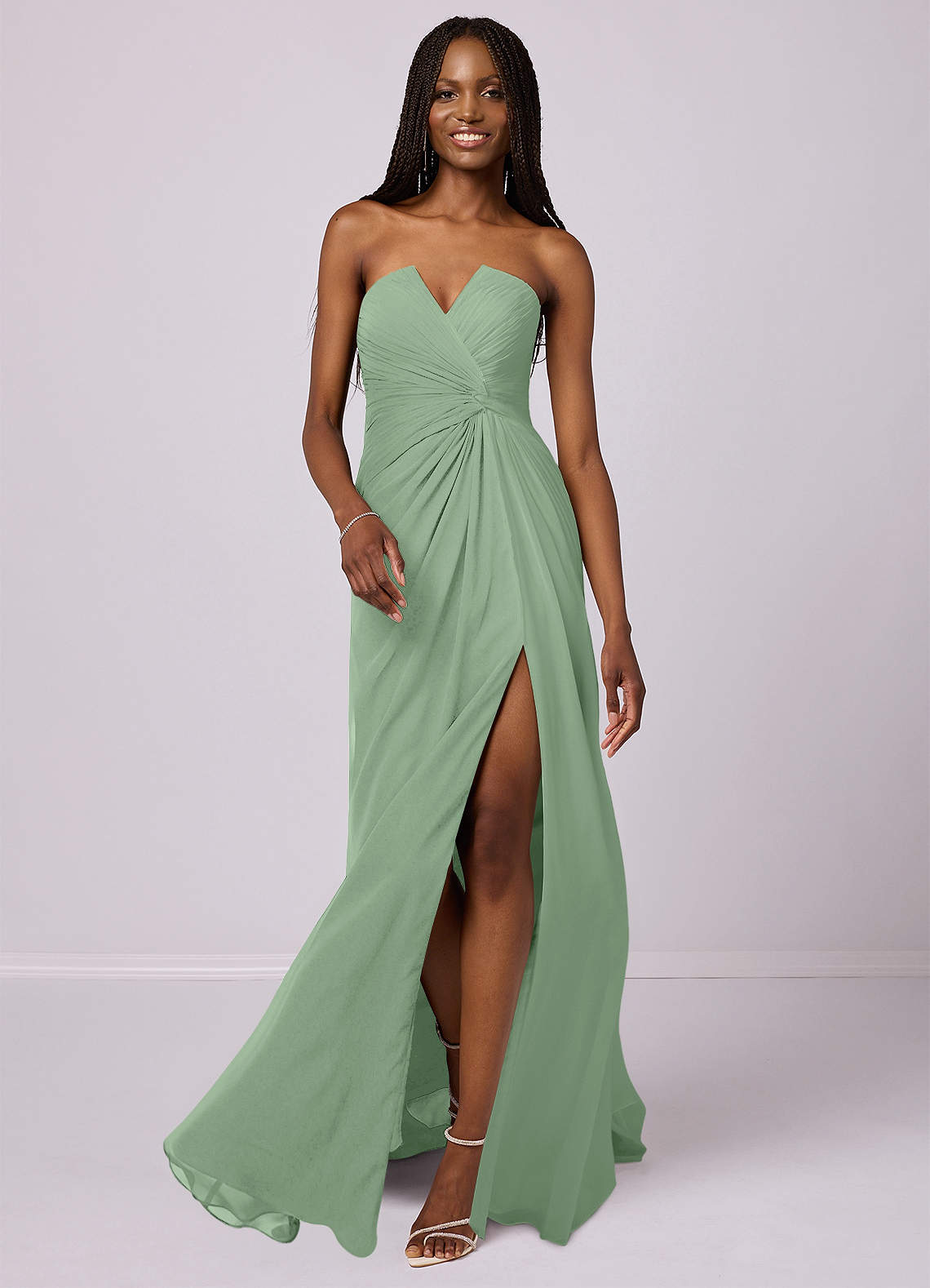 Grape Mermaid Strapless Chiffon Convertible Dress Matcha
