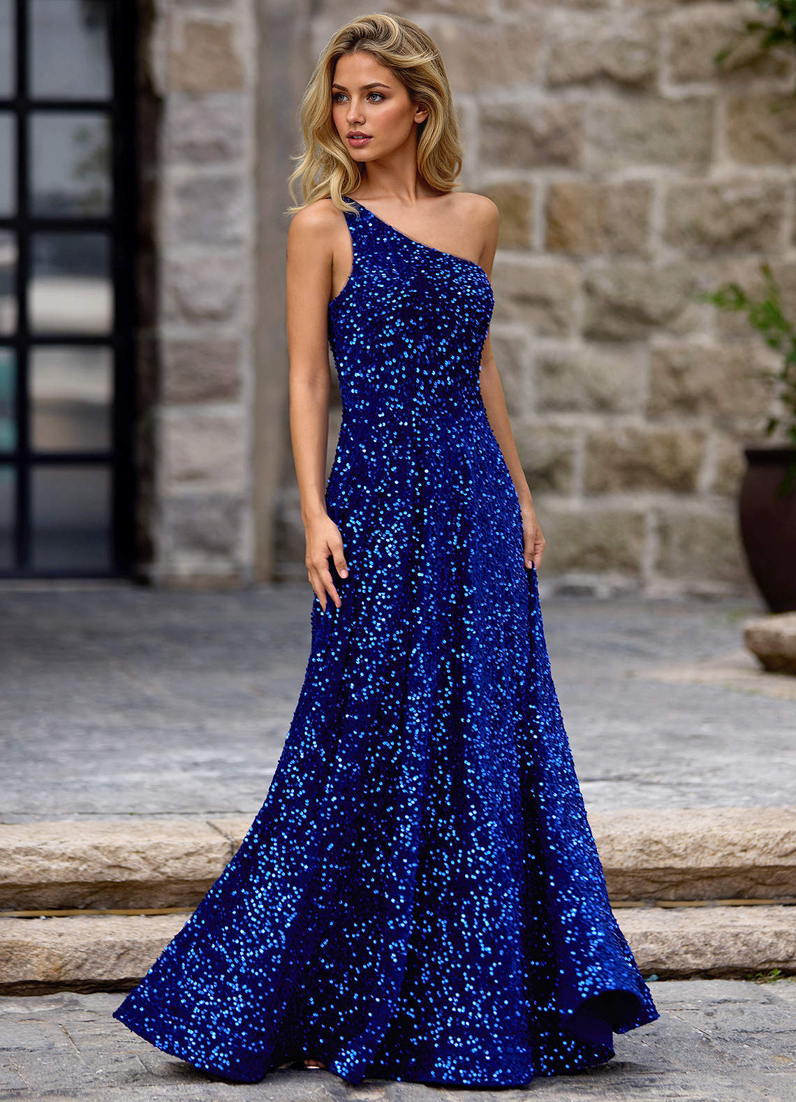 Opulent Royal Blue Velvet Sequins Prom Dress