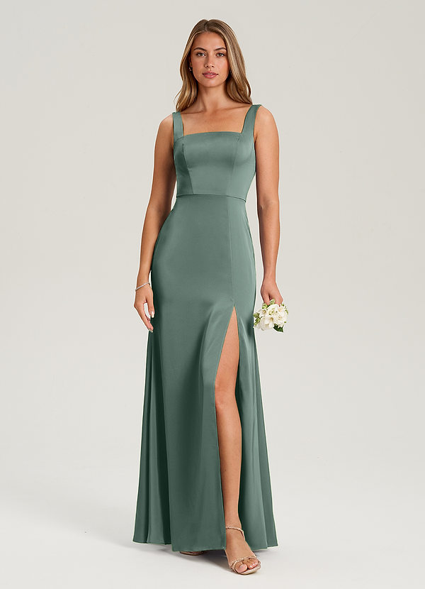 Sea Moss Mermaid Side Slit Stretch Satin Dress