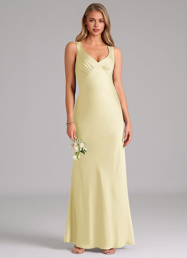 Lemon Sorbet A-Line Pleated Stretch Satin Dress
