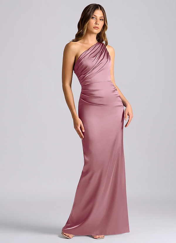 531 Varer Havfrue En skulder Stræk satin Gulv-længde Kjole