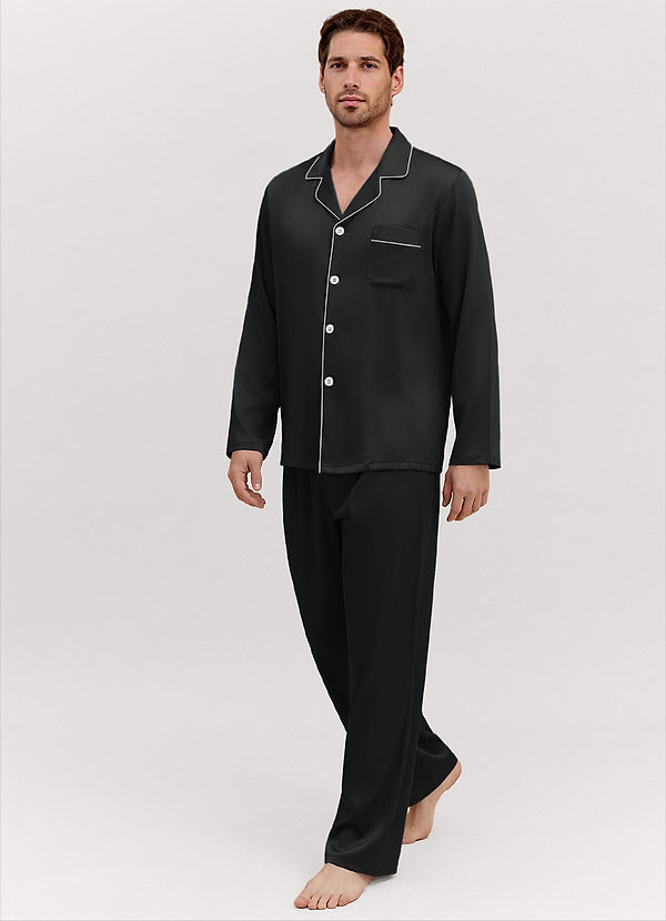 Sort 100% vaskbar silke pyjamas top med lange ærmer