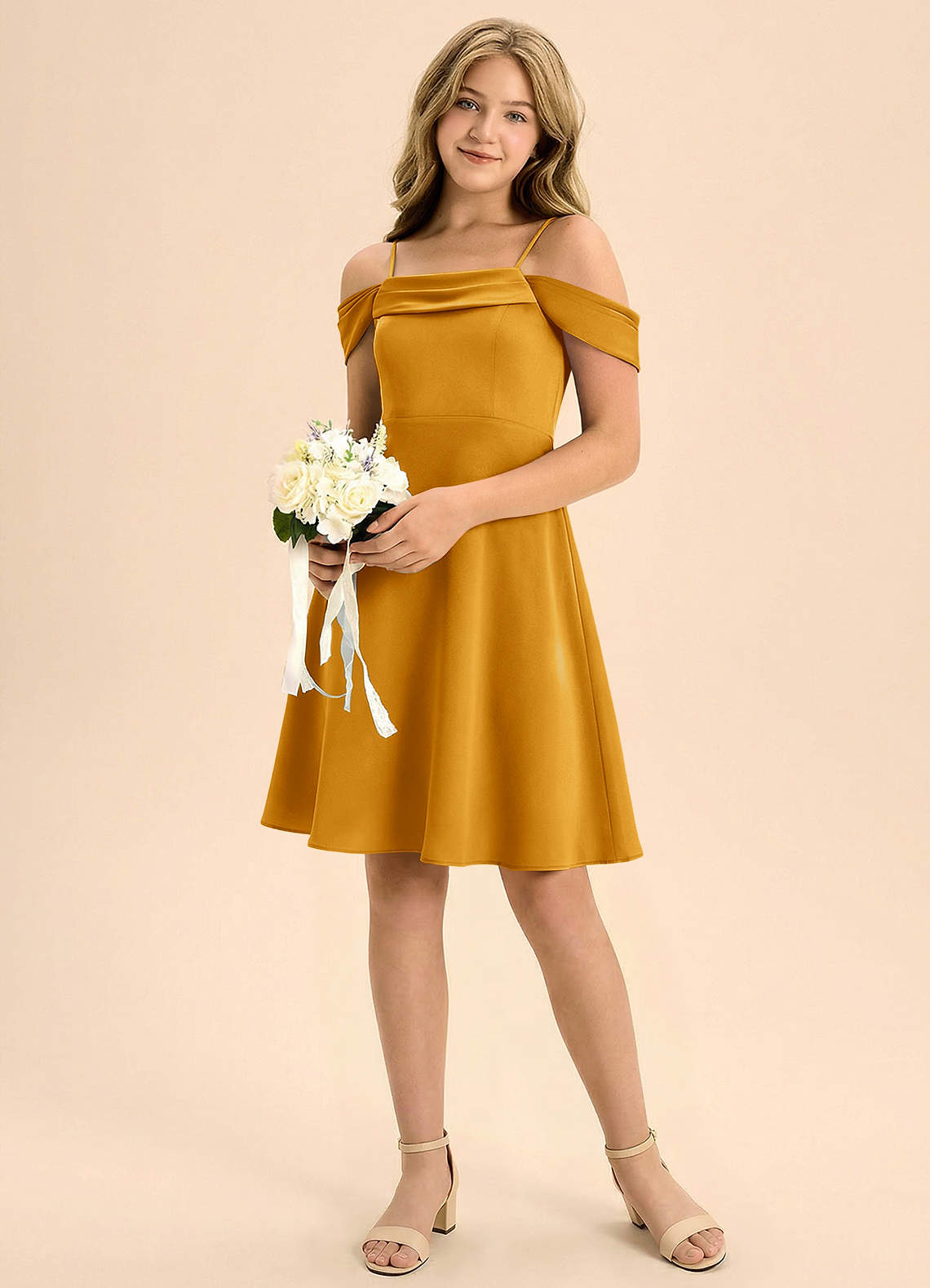 A-Line Plisseret Stræk satin Mini Junior brudepige Kjole