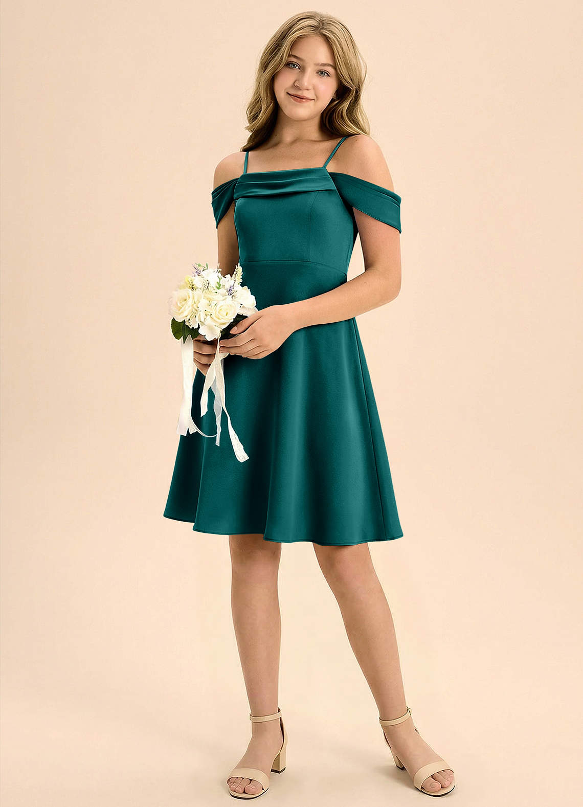 A-Line Plisseret Stræk satin Mini Junior brudepige Kjole
