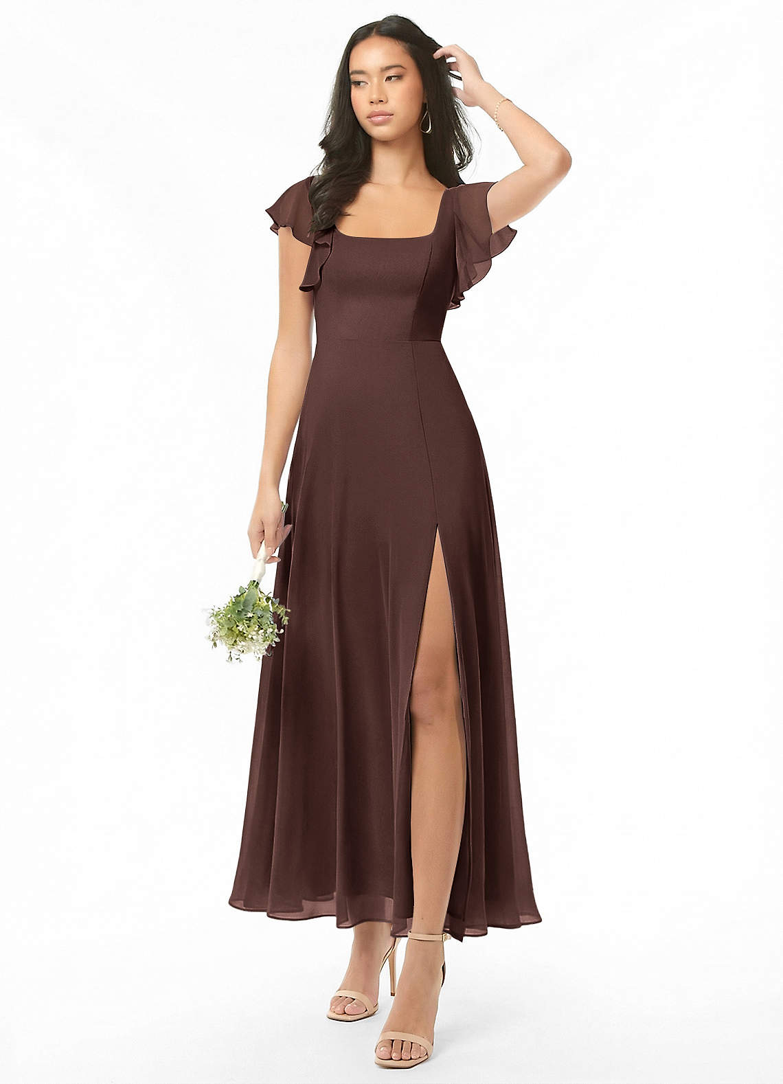En streg Ruchede Chiffon Ankel-længde Kjole