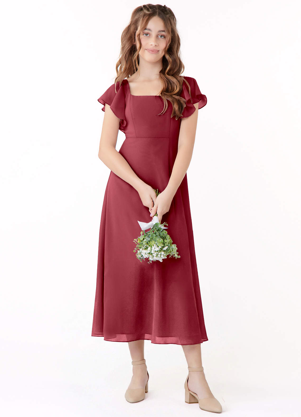 A-Line Ruchede Chiffon Te-længde Junior brudepige Kjole