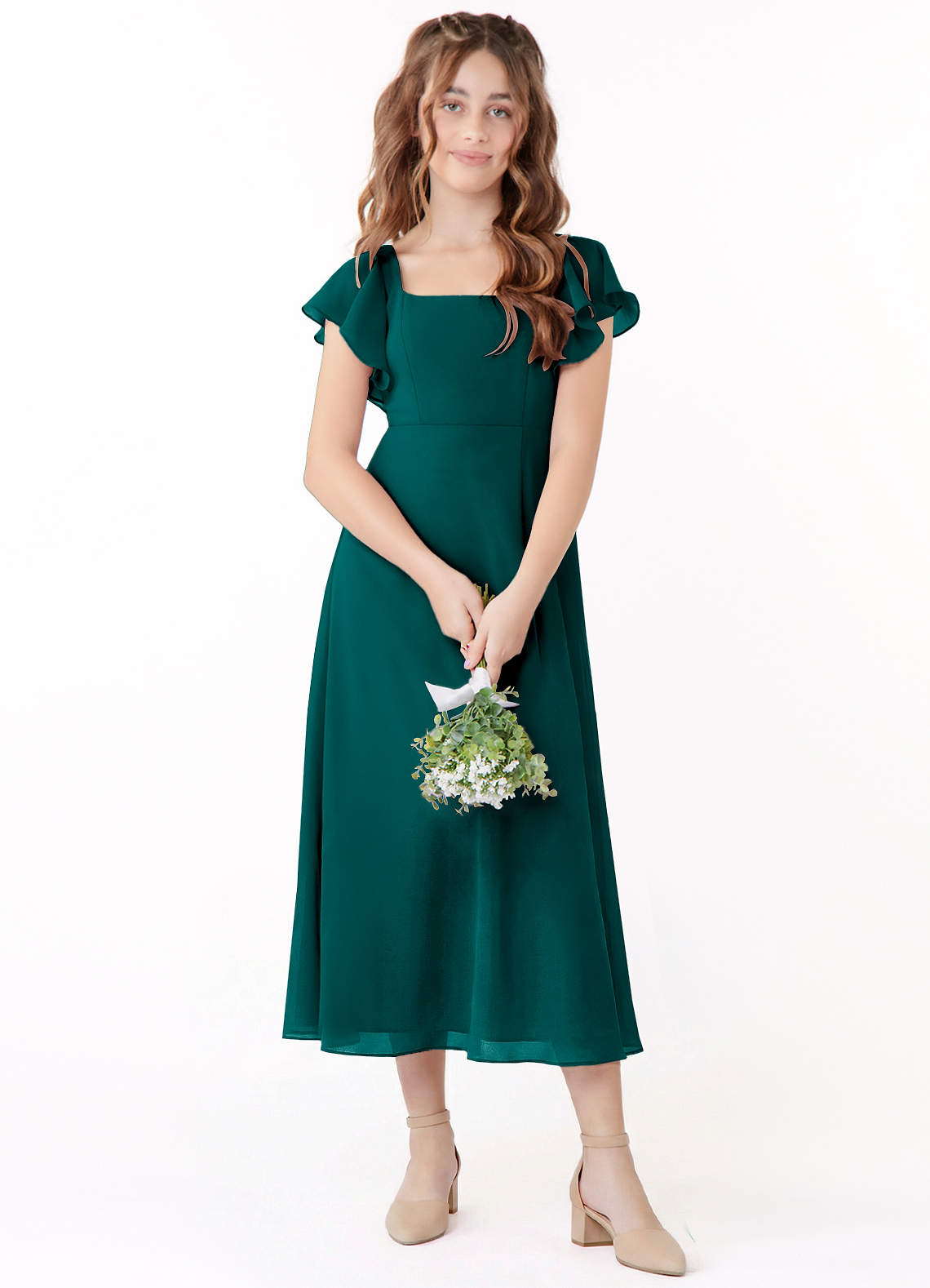 A-Line Ruchede Chiffon Te-længde Junior brudepige Kjole
