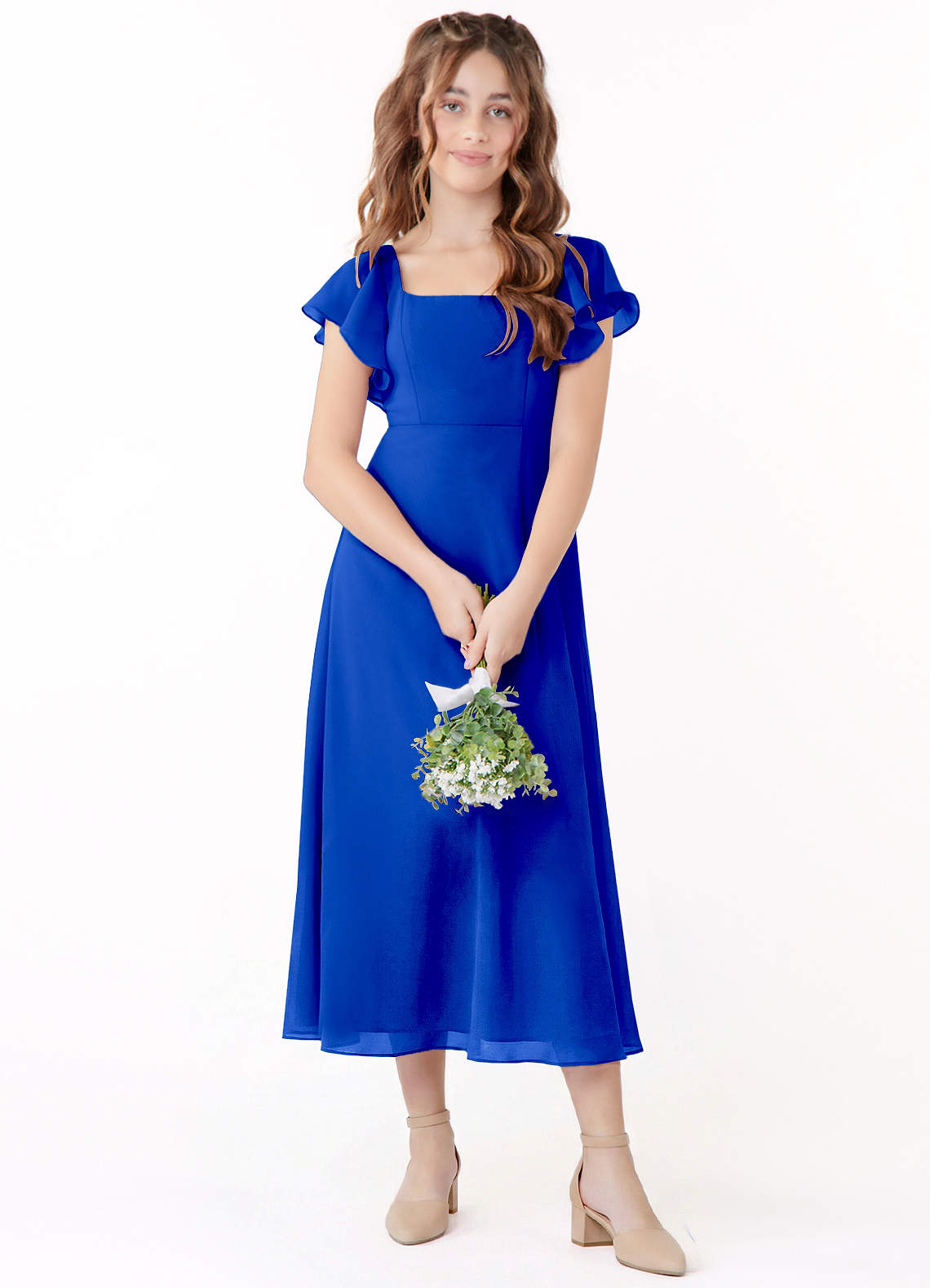 A-Line Ruchede Chiffon Te-længde Junior brudepige Kjole