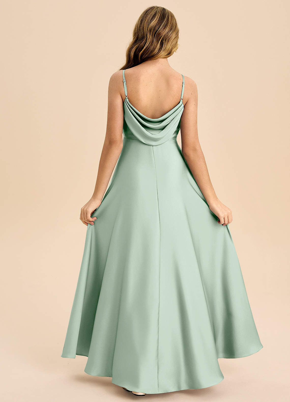 A-Line Plisseret Stræk satin Gulv-længde Junior brudepige Kjole