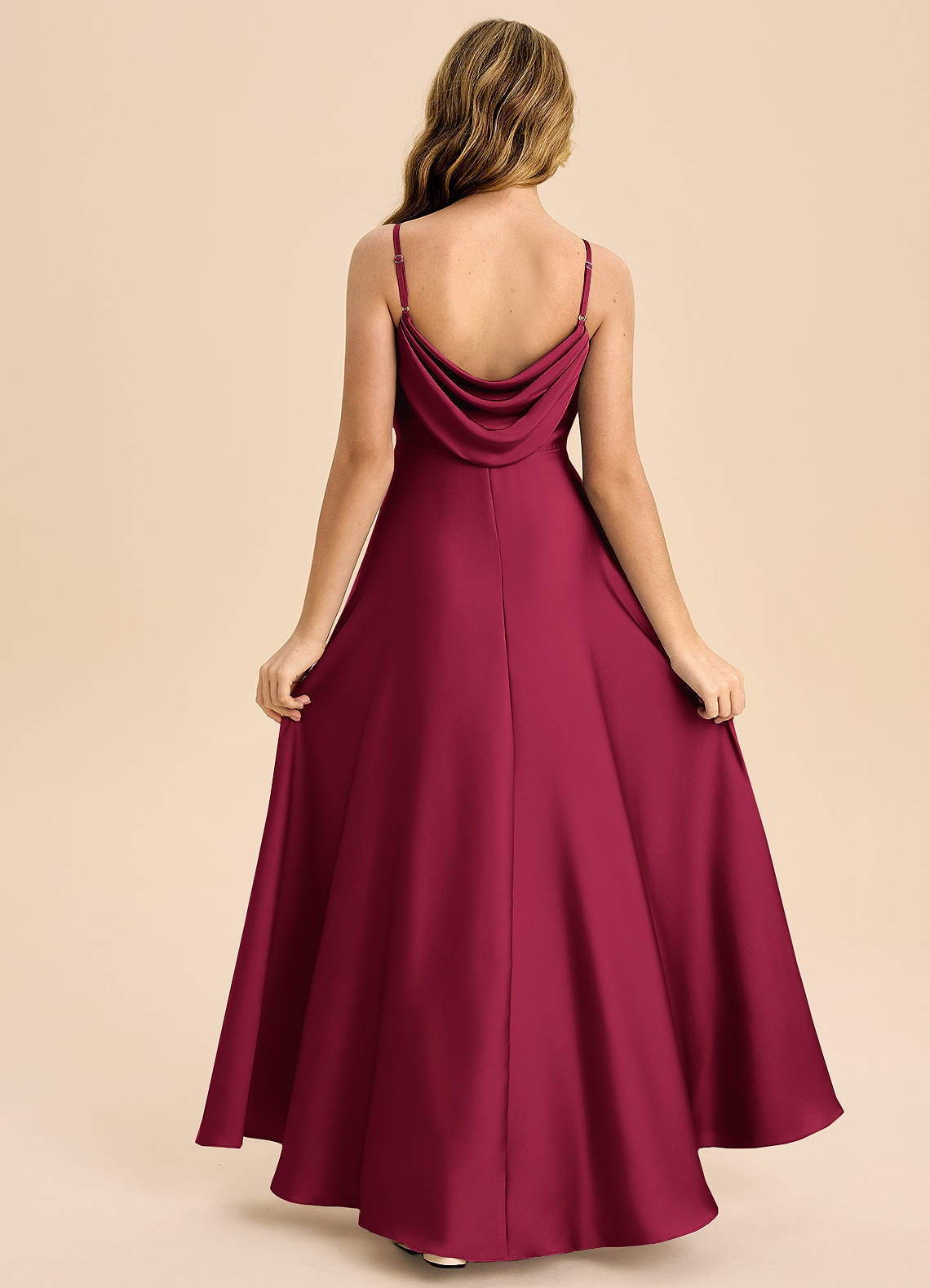 A-Line Plisseret Stræk satin Gulv-længde Junior brudepige Kjole