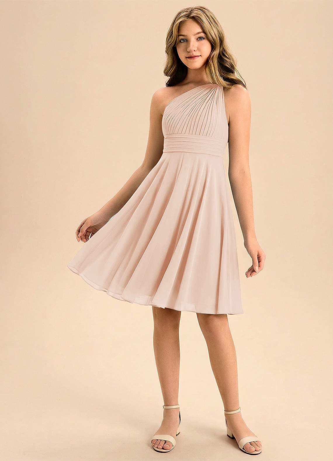 A-Line Plisseret Chiffon Mini Junior brudepige Kjole