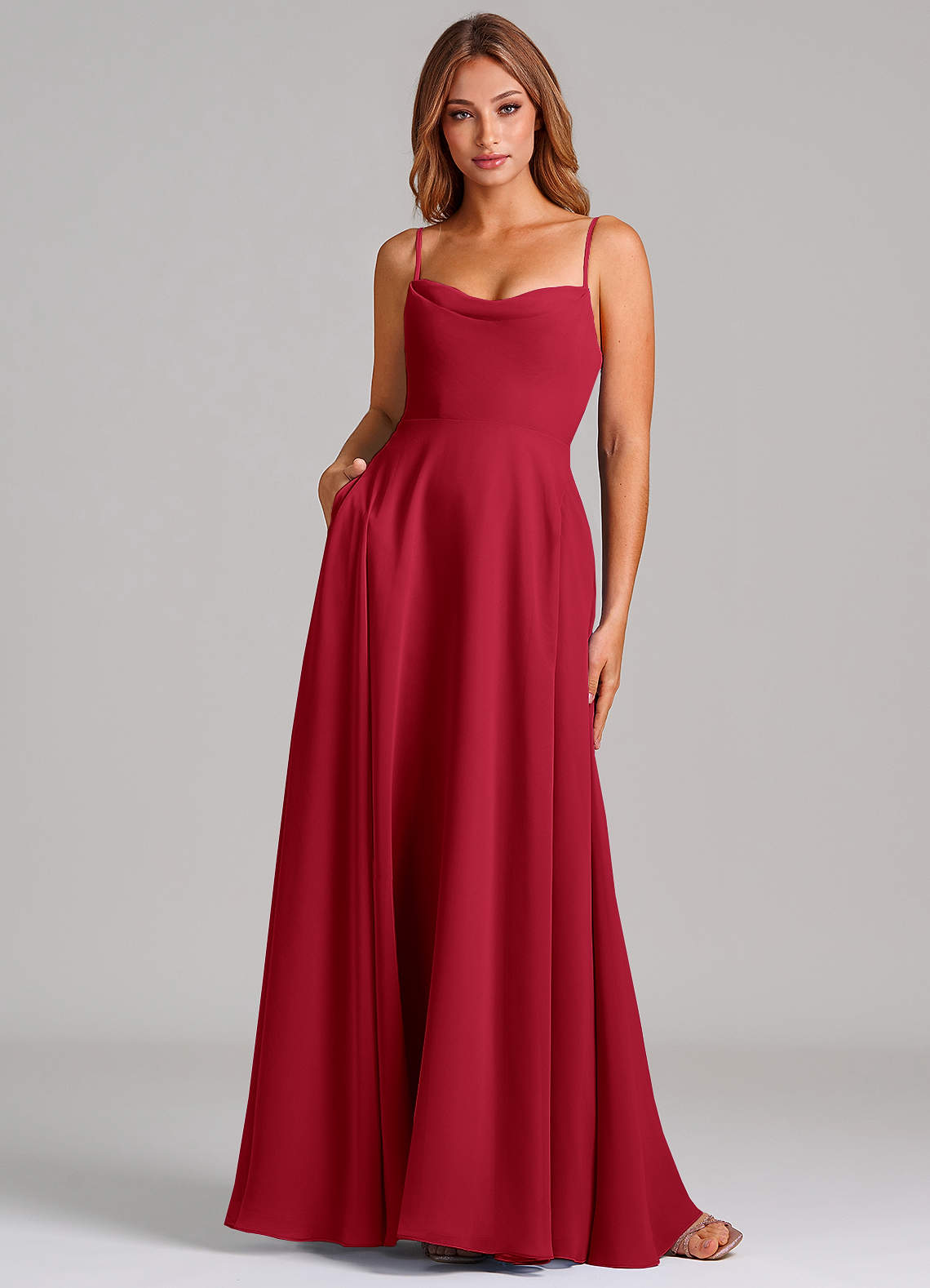 En streg Plisseret Chiffon Gulv-længde Kjole