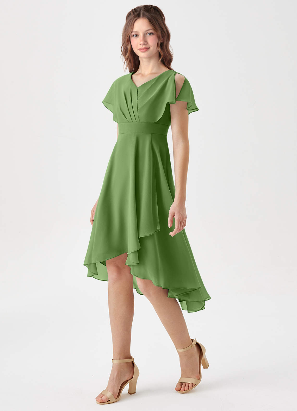 A-Line Plisseret Chiffon Asymmetrisk Junior brudepige Kjole