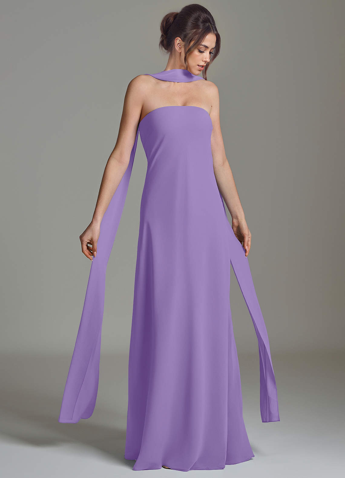 En streg Stropløs Chiffon Gulv-længde Kjole