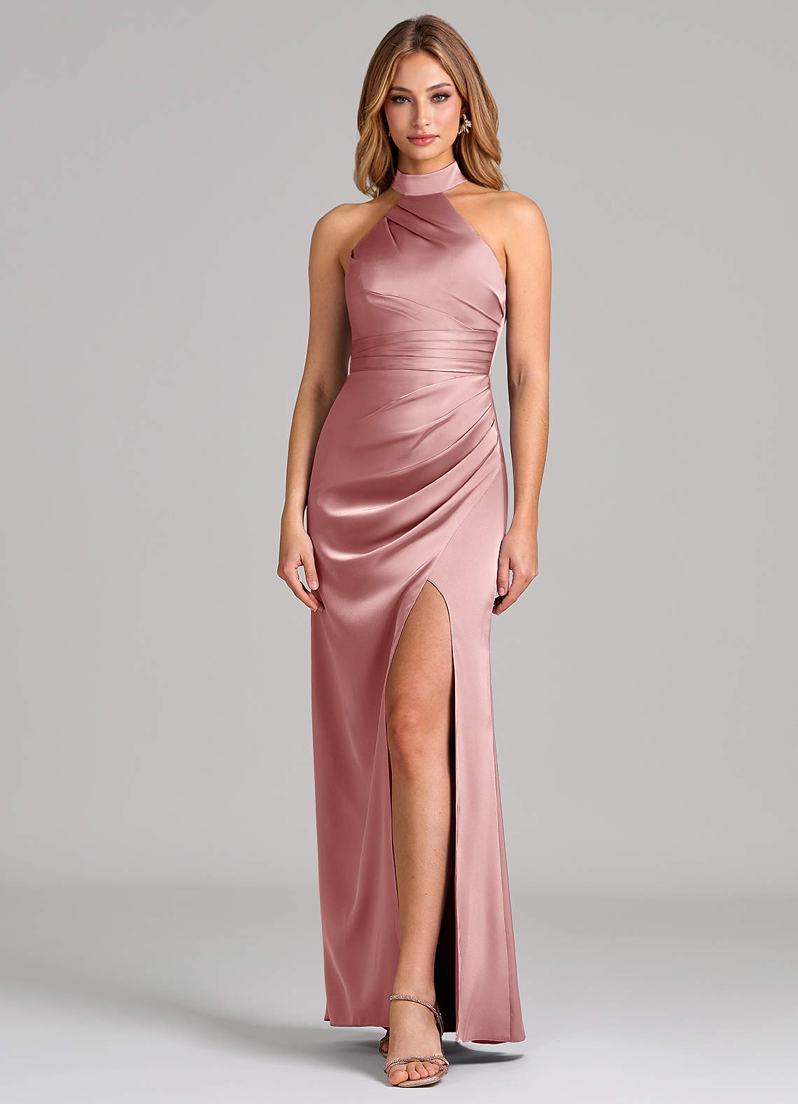 Skede Plisseret Stræk satin Gulv-længde Kjole