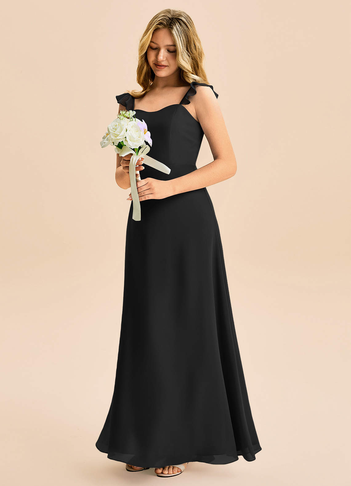 A-Line Ruchede Chiffon Gulv-længde Junior brudepige Kjole