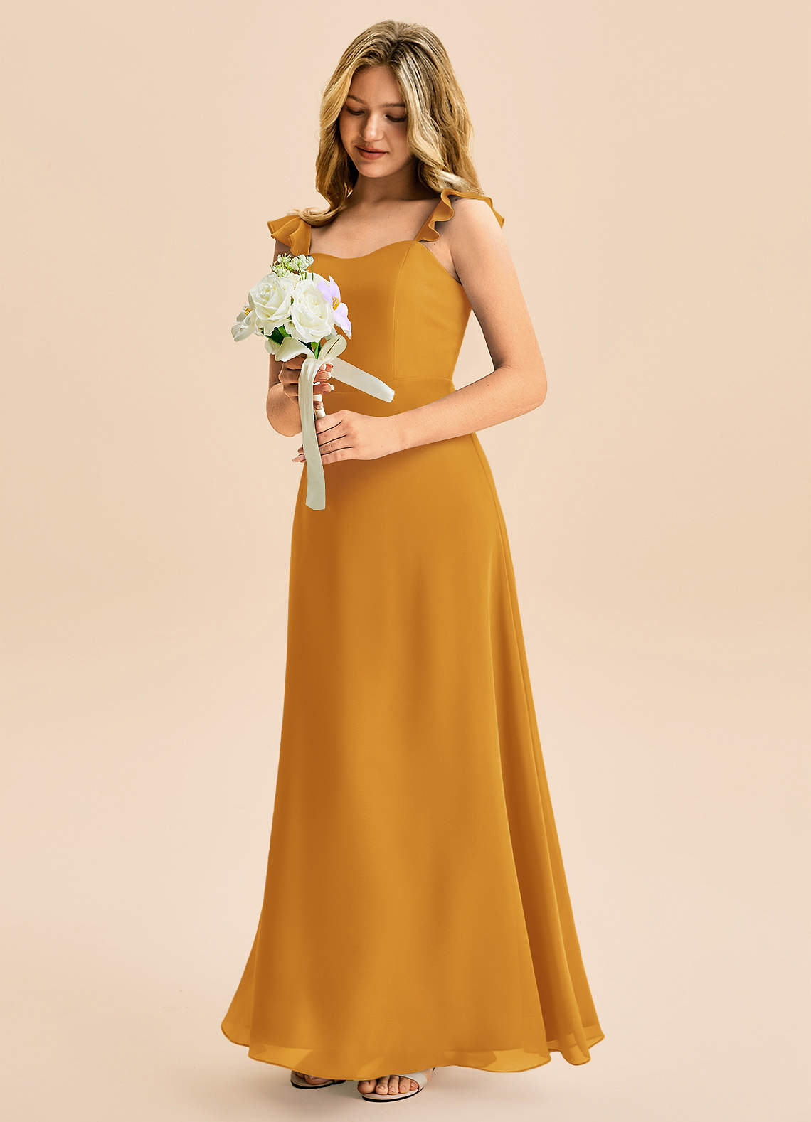 A-Line Ruchede Chiffon Gulv-længde Junior brudepige Kjole