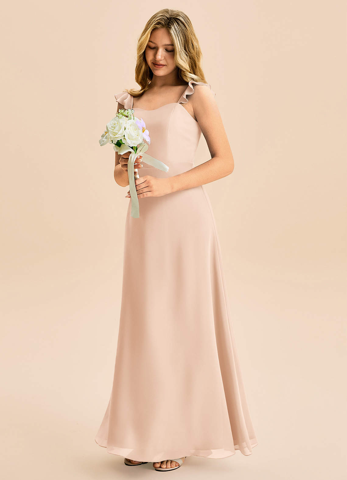 A-Line Ruchede Chiffon Gulv-længde Junior brudepige Kjole