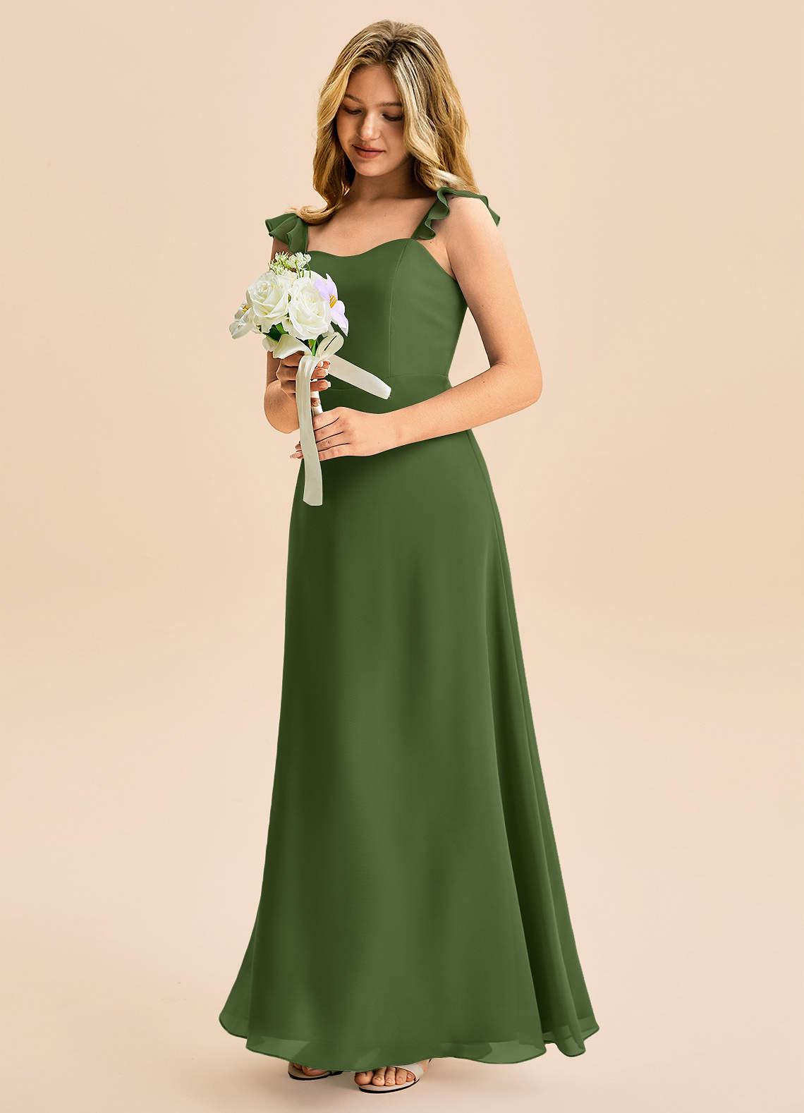 A-Line Ruchede Chiffon Gulv-længde Junior brudepige Kjole