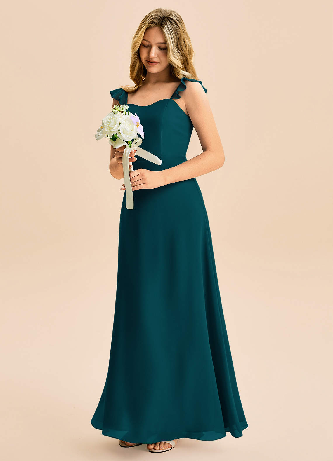 A-Line Ruchede Chiffon Gulv-længde Junior brudepige Kjole