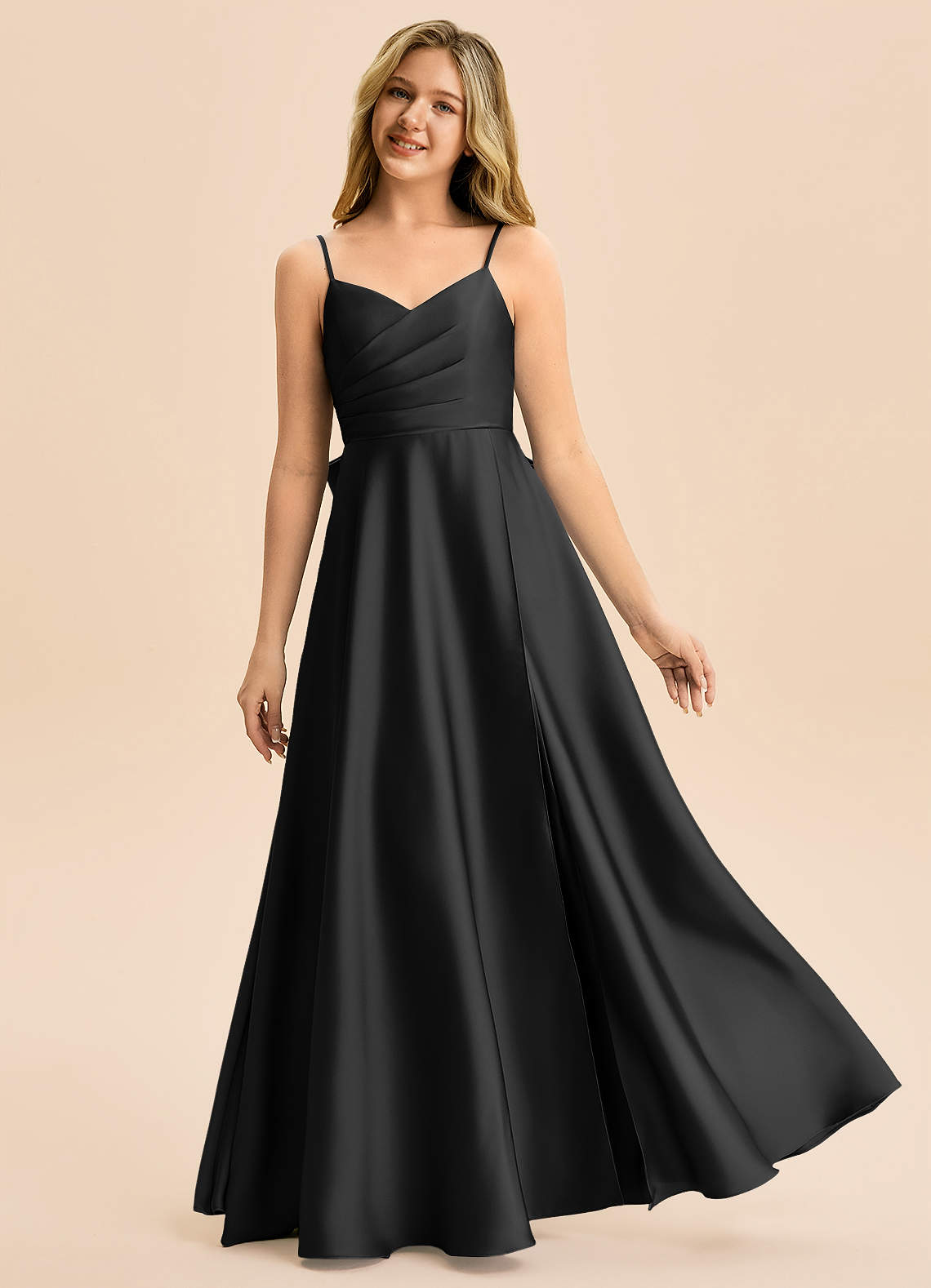 A-Line Plisseret Stræk satin Gulv-længde Junior brudepige Kjole