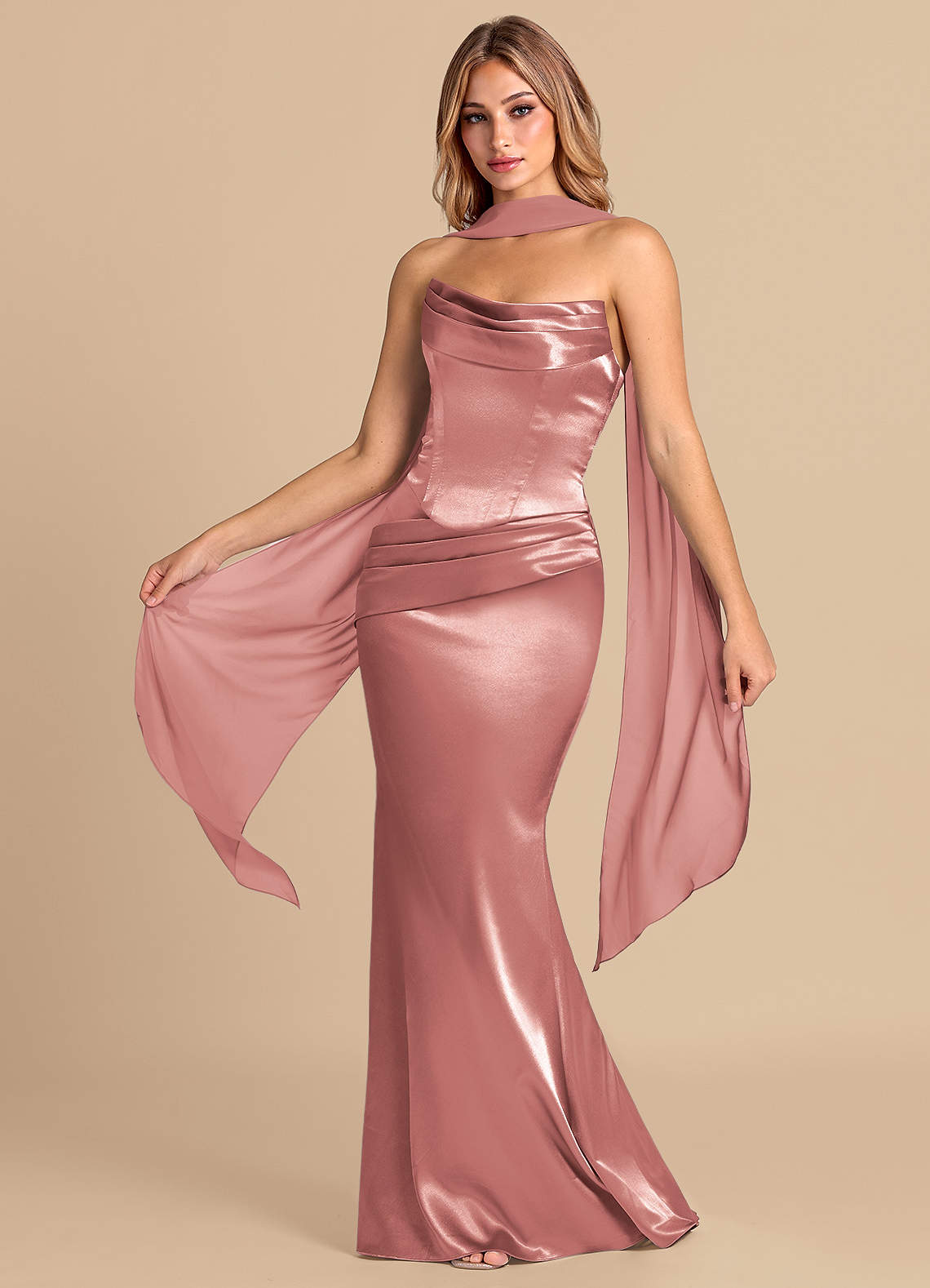 Havfrue Korset Metallisk satin Gulv-længde Kjole