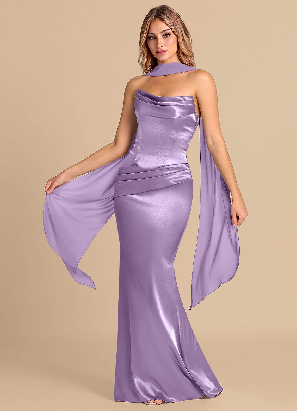 Havfrue Korset Metallisk satin Gulv-længde Kjole