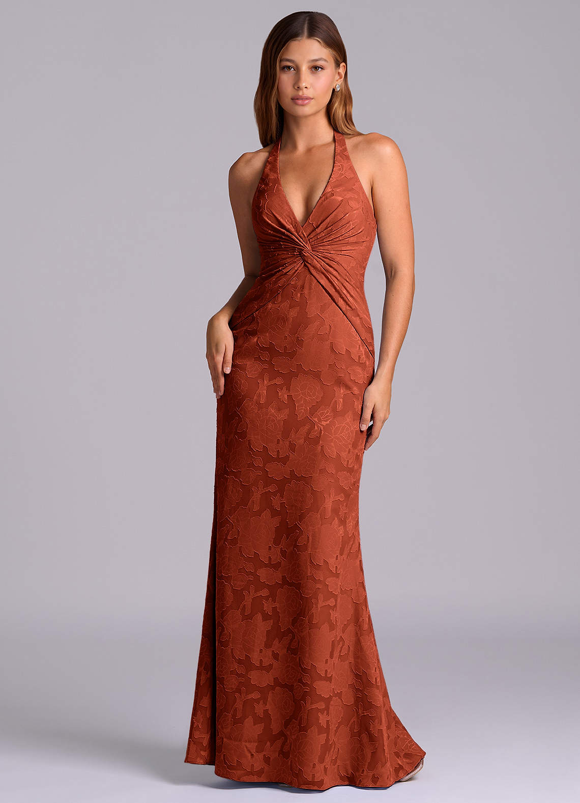 Havfrue Plisseret Blomsterudbrændthed Gulv-længde Kjole