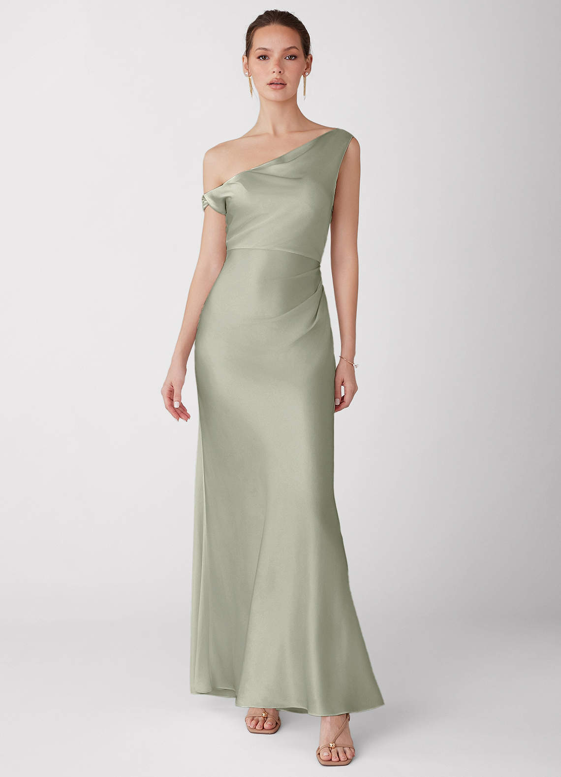 Avela Dusty Sage Lysende satin maxikjole