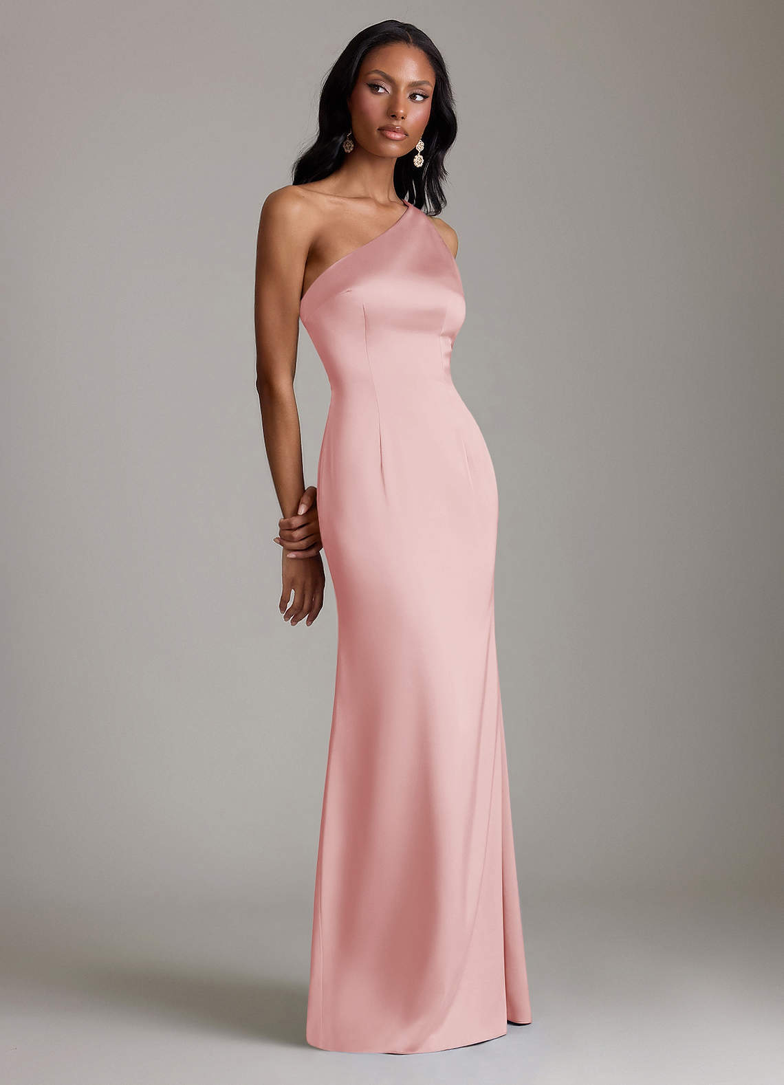 Havfrue En skulder Stræk satin Gulv-længde Kjole