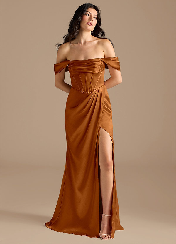 Wandelbar Etui Schulterfrei Metallischer Satin Kleid Kupfer