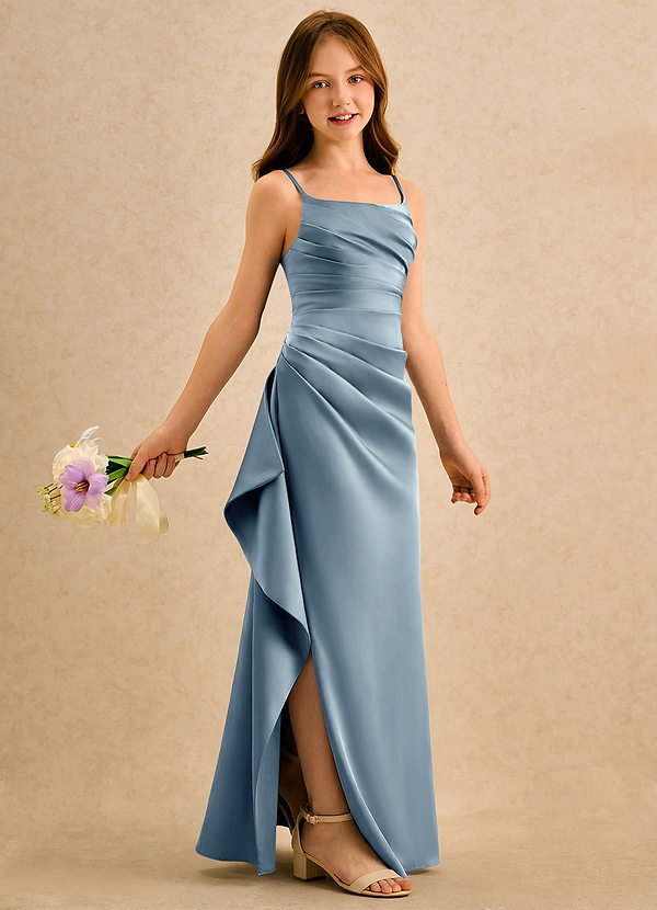 A-Linie Schleifen Matte Satin Kleid Elfenbein Taubenblau