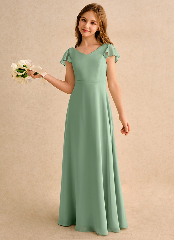 A-Linie mit ärmel Chiffon Kleid Matcha