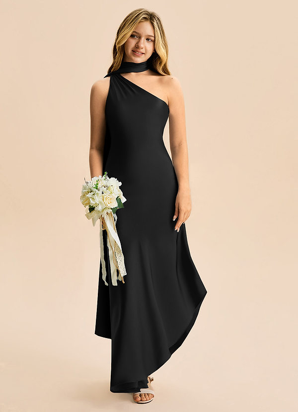 A-Linie Schulterfrei Stretch-Satin Kleid Schwarz